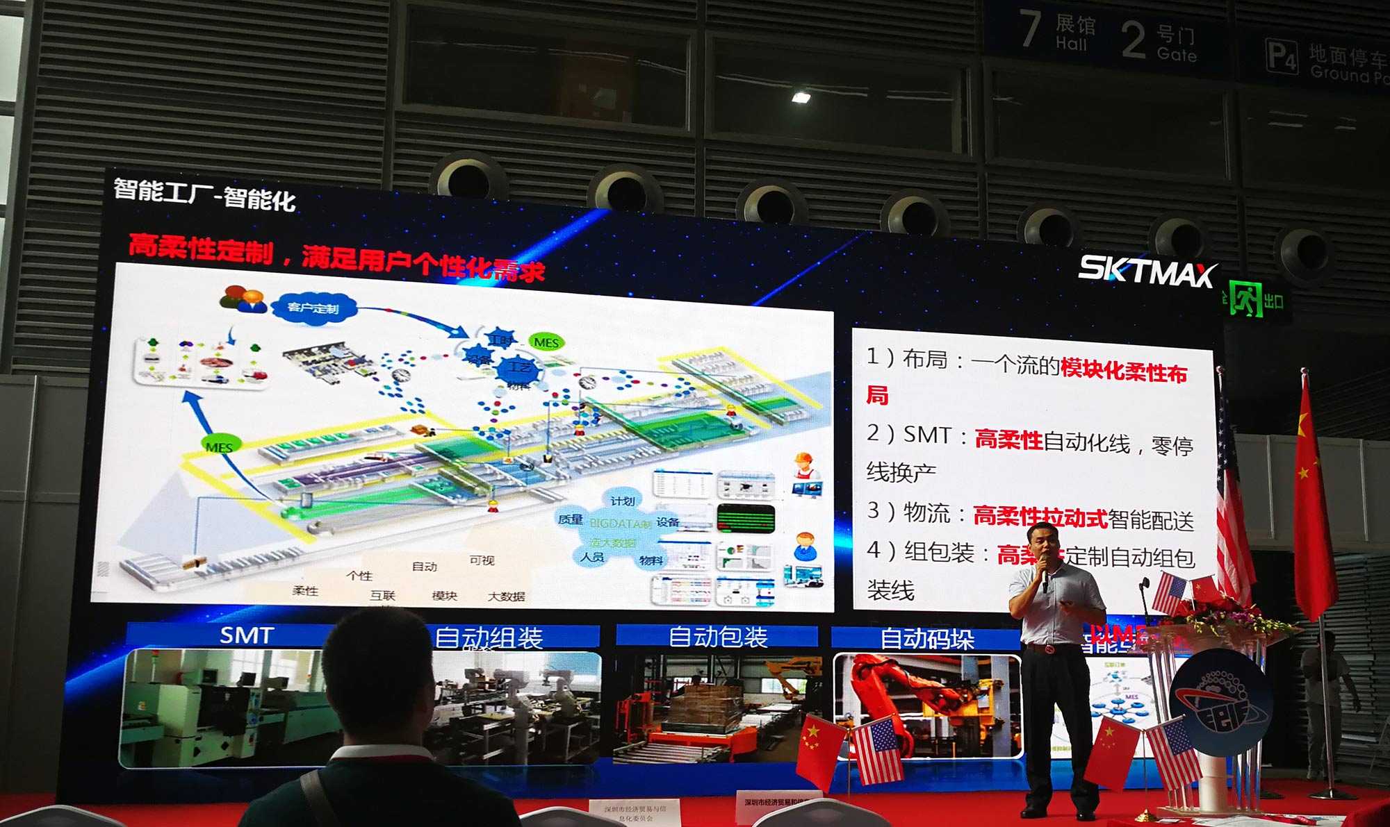? ? ?深科特同期還受邀參與由美國駐廣州總領事館、深圳市電子裝備產業協會、深圳市智能裝備產業協會主辦的中美智慧工廠交流會,由事業部總監何云德分享以“移動終端如何掌控智能工廠”為主題的精彩內容。